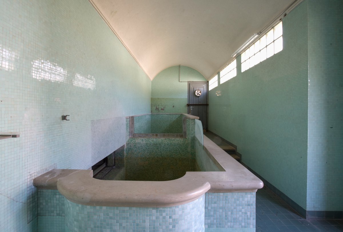 A côté du réservoir pour le trop-plein d’eau potable, la maison de la truite est inaugurée en 1950. Avec son élégant habillage intérieur en mosaïque verte, le bassin déversoir en marbre relié au réservoir, permettait de contrôler la qualité de l'eau et de la chlorer.